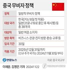 | 2024년 11월 | 중국, 한국 여권 소지자 포함 9개국에 30일 무비자 체류 허용 시작 | 상호주의적 대응의 서막 |