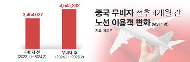| 2025년 상반기 | 중국의 비자 완화 정책으로 상하이, 베이징 등 외국인 입국자 및 무비자 입국자 급증 (전년 대비 2~3배) | 중국 관광 산업 회복 가속화 |